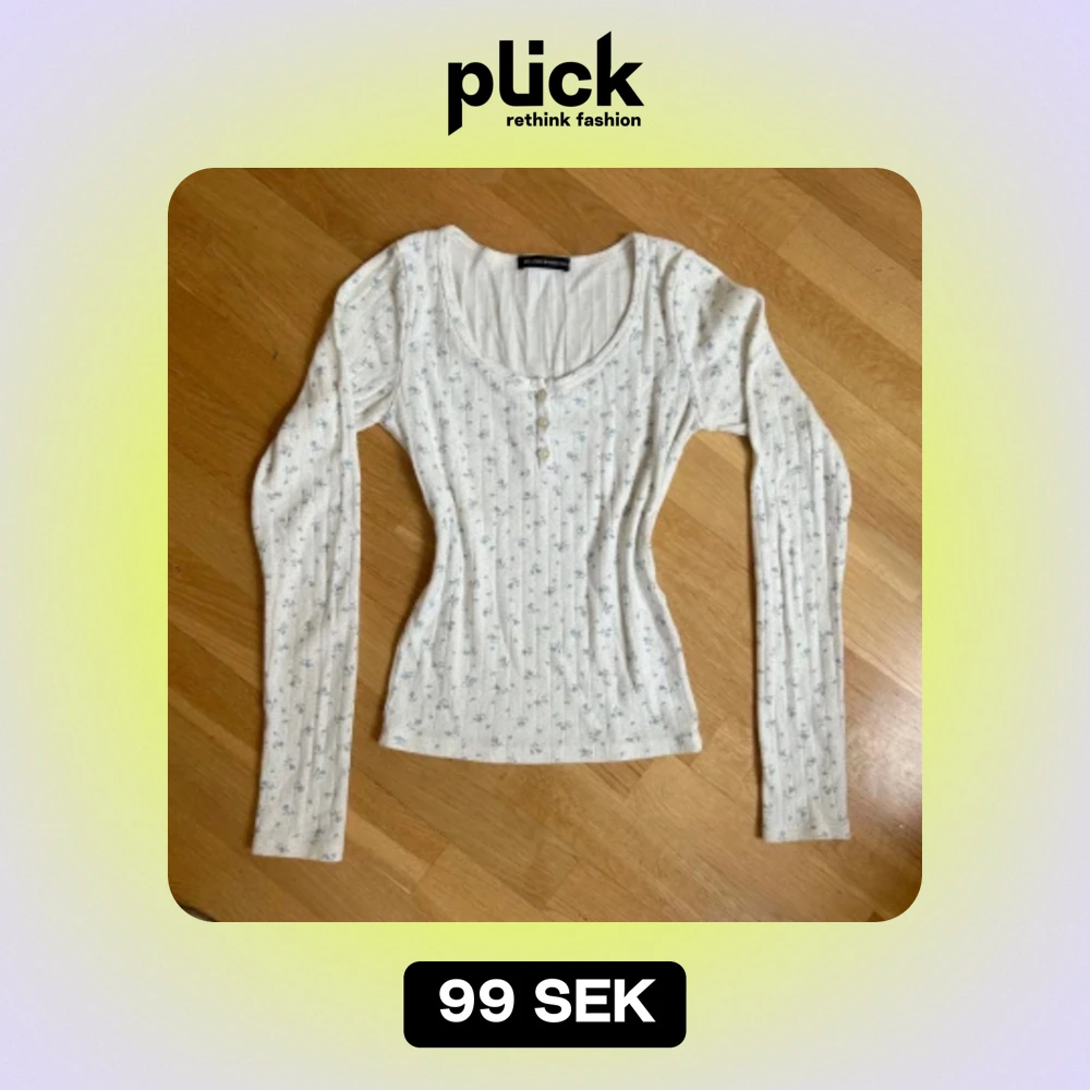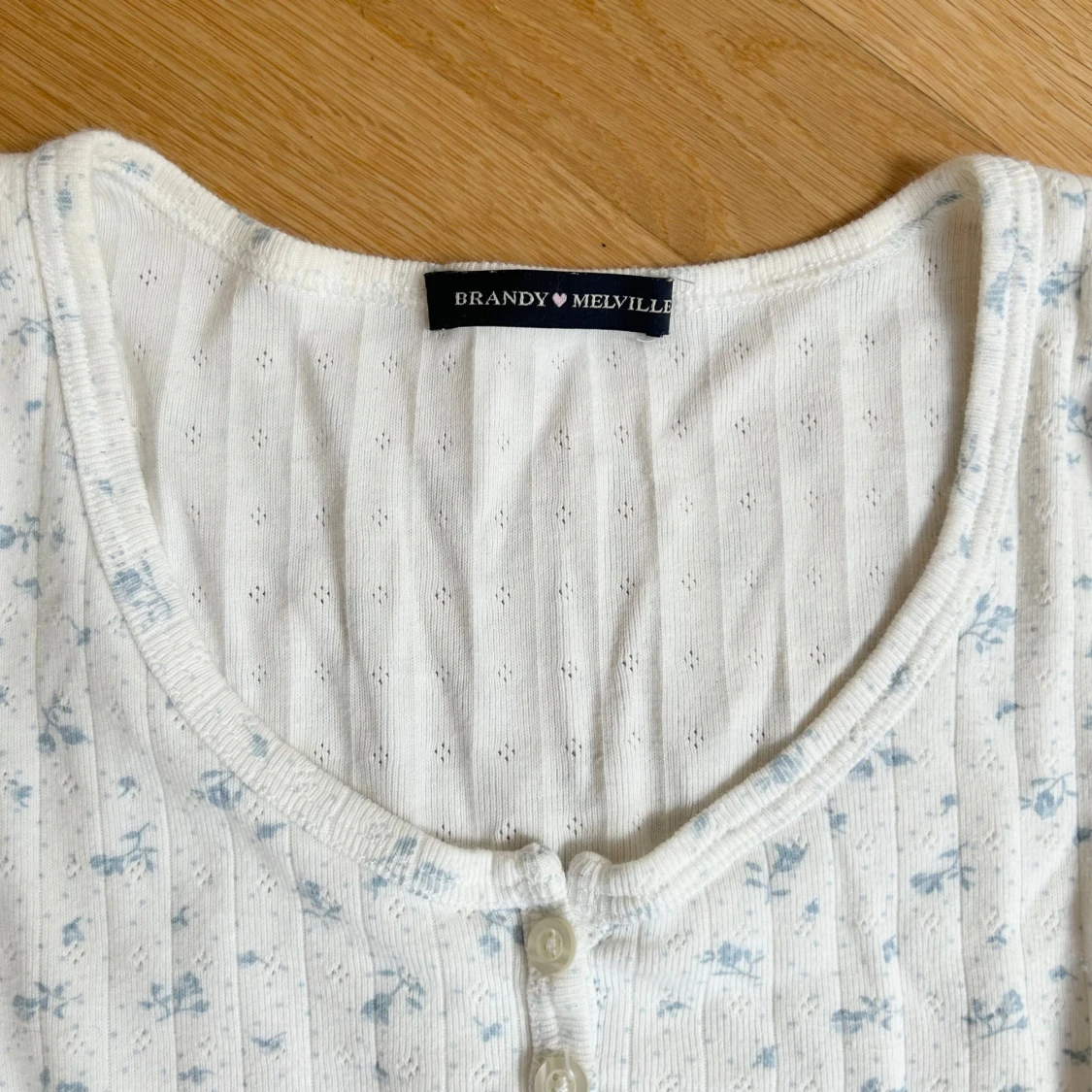 Söt långärmad tröja från Brandy Melville med ljus blå blommor och pointelle material ☺️
