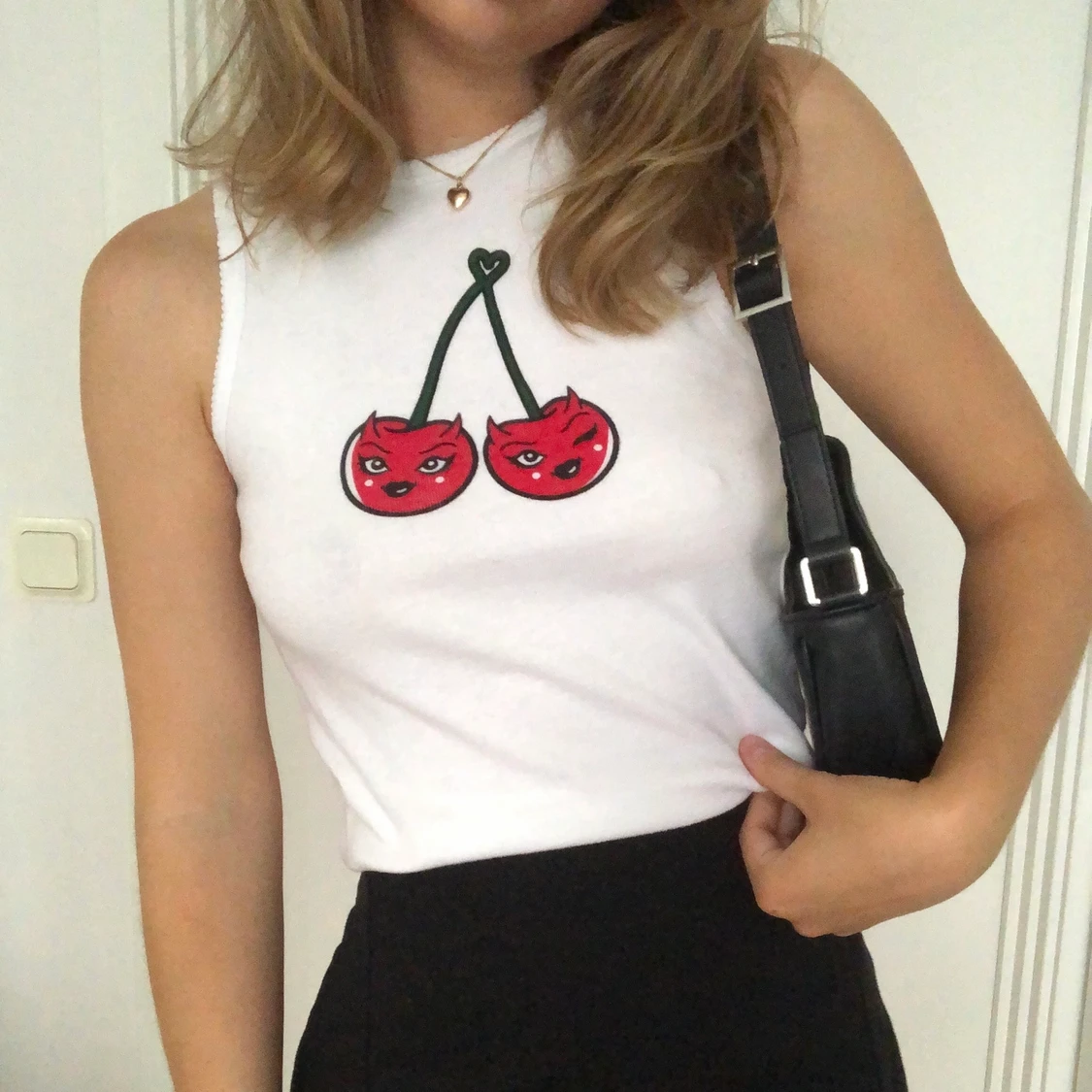 Linne/topp från Brandy Melville/John Galt med körsbär tryck 🍒 Aldrig använd! Står ej storlek men passar XS 💕