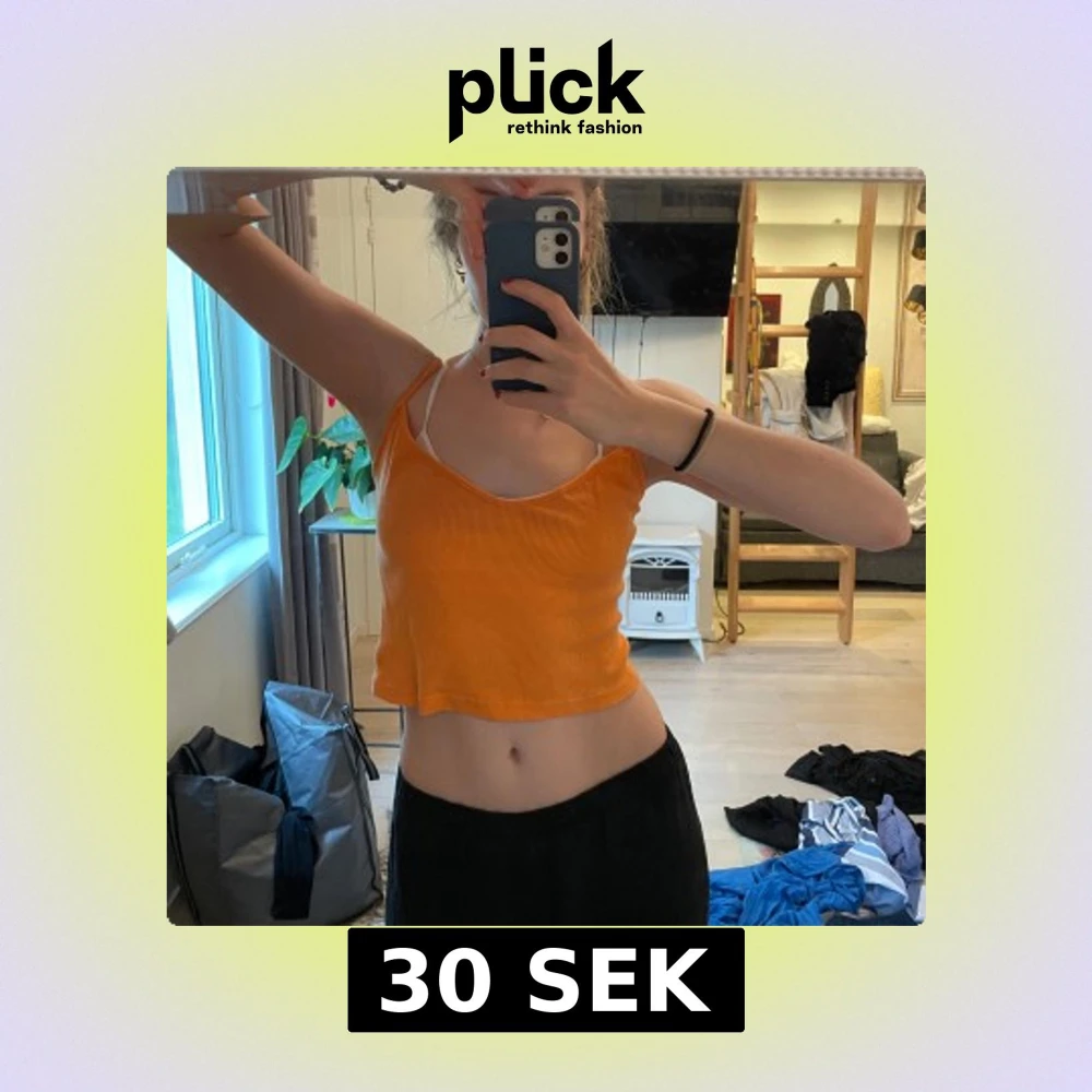 Säljer en orange ribbad linnetopp från Brandy Melville. Toppen är croppad med smala axelband och v-ringad hals.