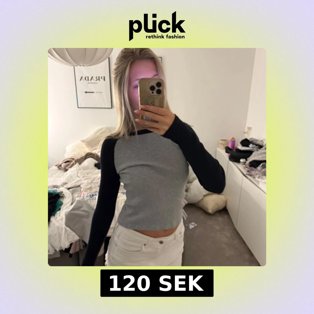 Säljer en stilren långärmad tröja med grå kropp och svarta ärmar. Tröjan är ribbad och har en tight passform med rund halsringning.❤️❤️