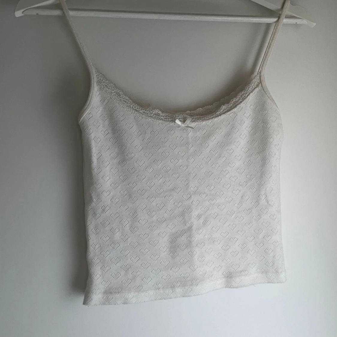 Superfint vitt mönstrat linne med en liten rosett! Väldigt mjukt material och väldigt fin modell💞