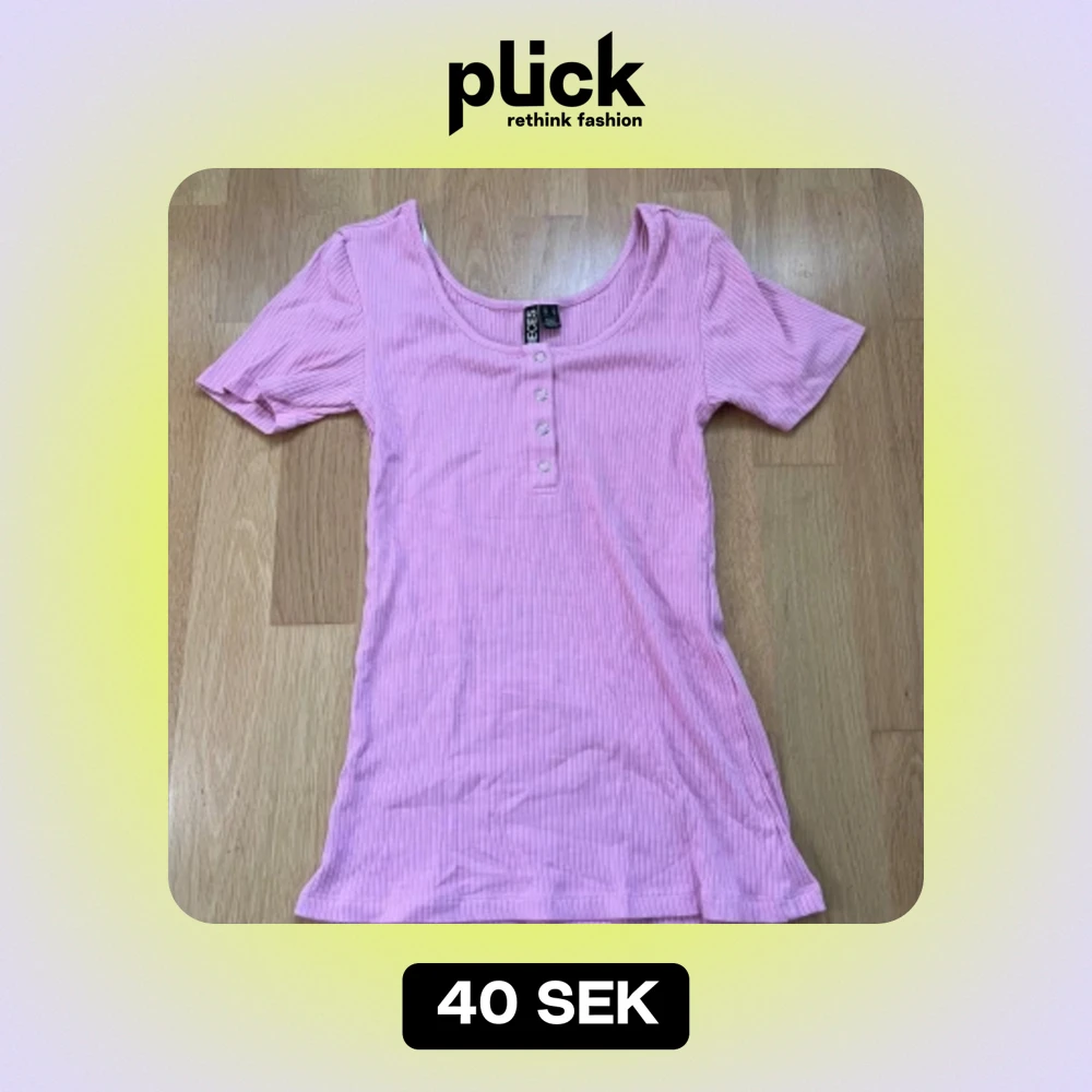 Säljer en superfin rosa ribbad topp från Pieces. Den har korta ärmar och en rund halsringning med knappar framtill. Använd ca 2 gånger. Står storlek M men den passar som XS