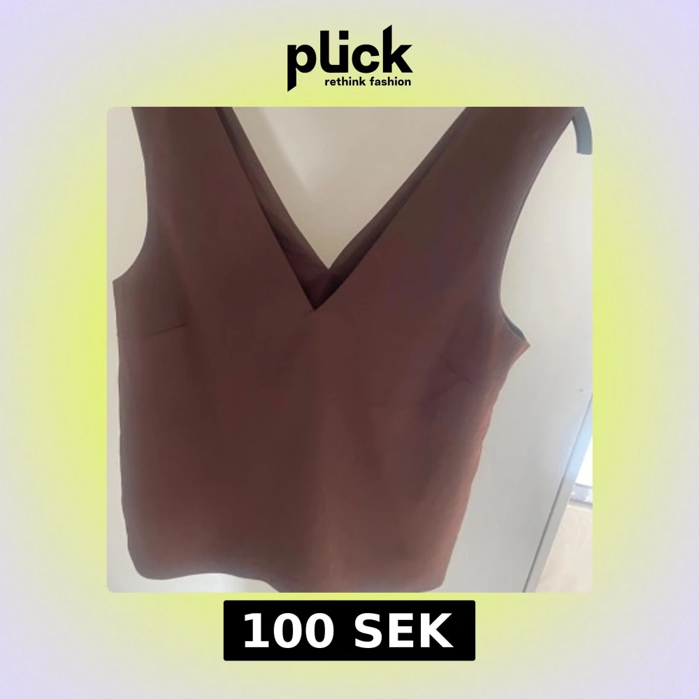 Säljer en stilren brun ärmlös topp med djup v-ringning. Perfekt för en elegant och minimalistisk look. Toppen har en enkel design utan mönster eller detaljer. Satin