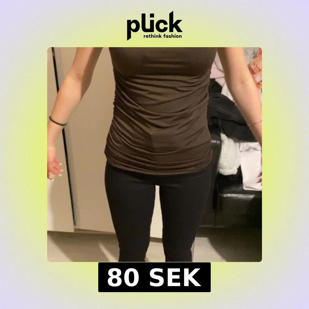 Säljer en brun, tight linnetopp med smala axelband. Toppen har en enkel och stilren design, perfekt att matcha med olika outfits. Materialet känns mjukt och följsamt mot kroppen.