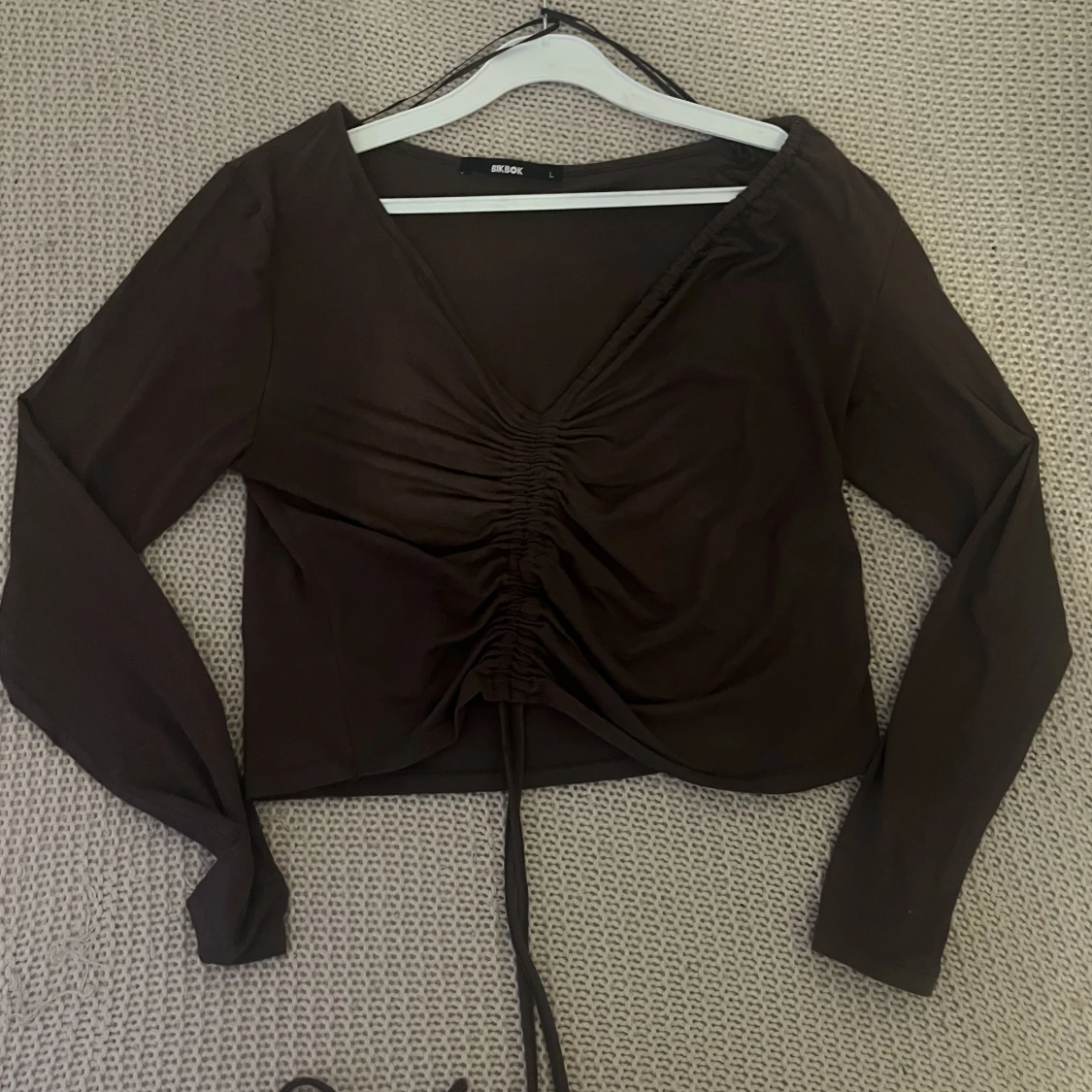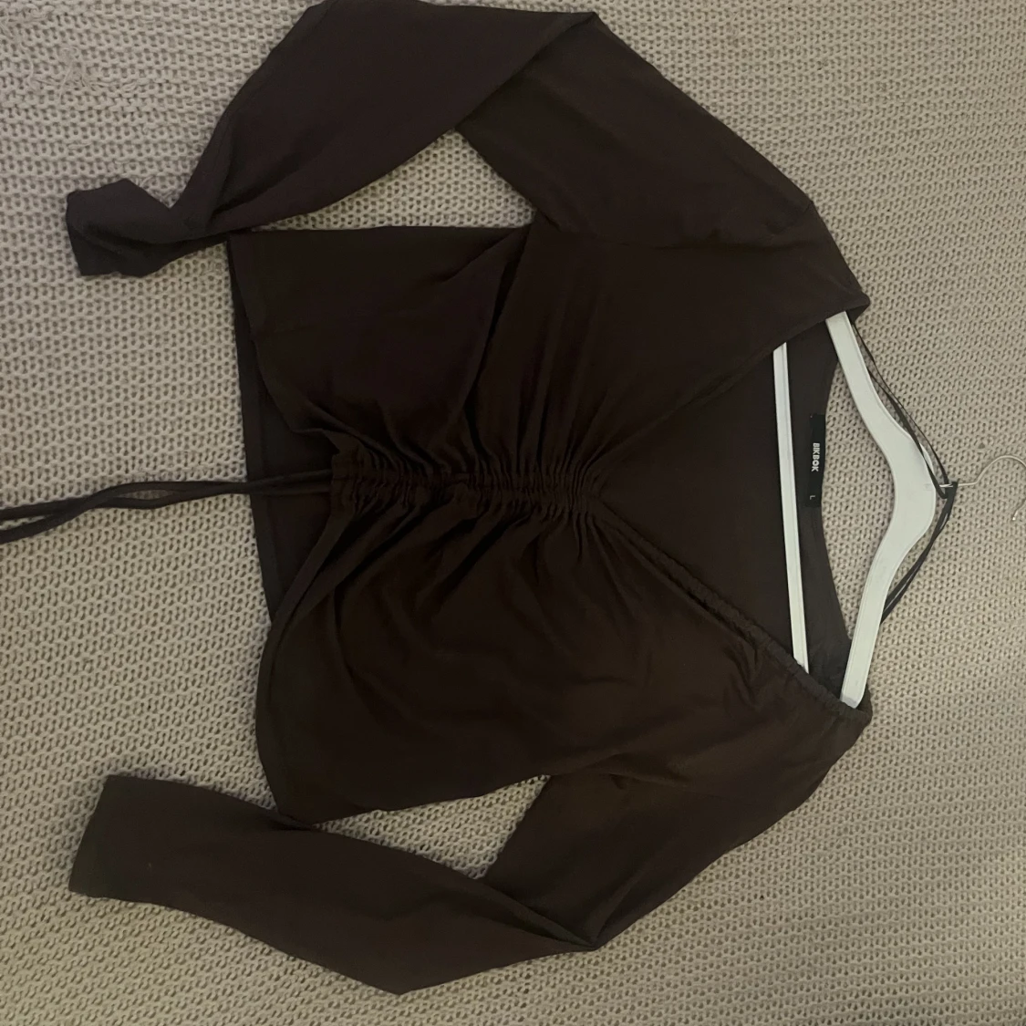 En tröja med V urringning, detta är då en brun tröja med V urringning två band som man kan göra tröjan tajtare.