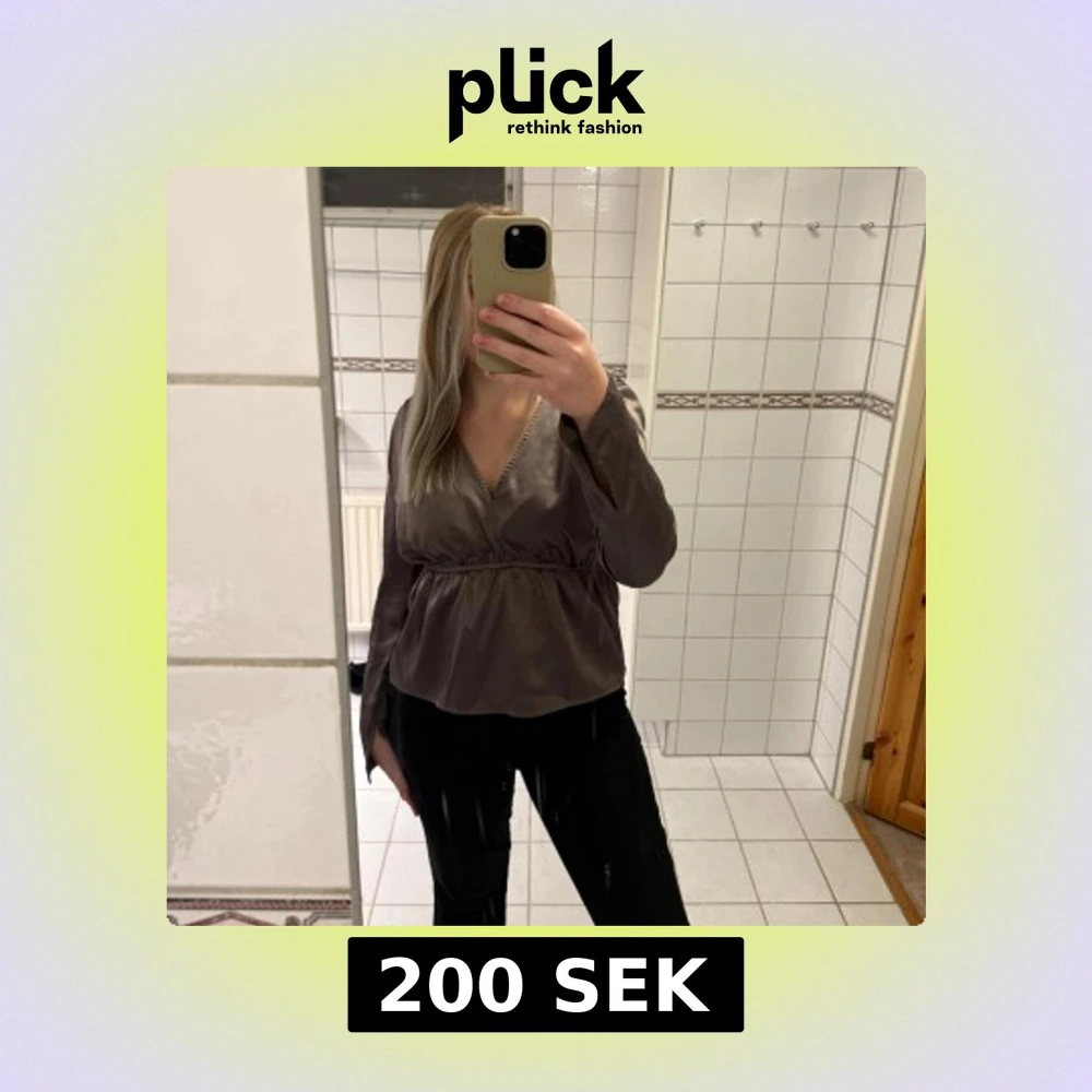 Snygg brun blus med v-ringning och långa ärmar. Blusen har en elegant design med lätt glansigt material och en smickrande passform. Perfekt för en stilren look.