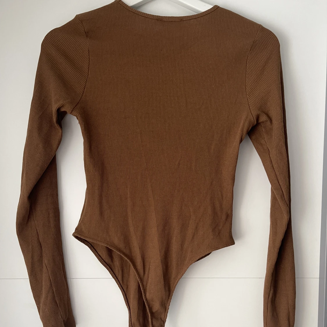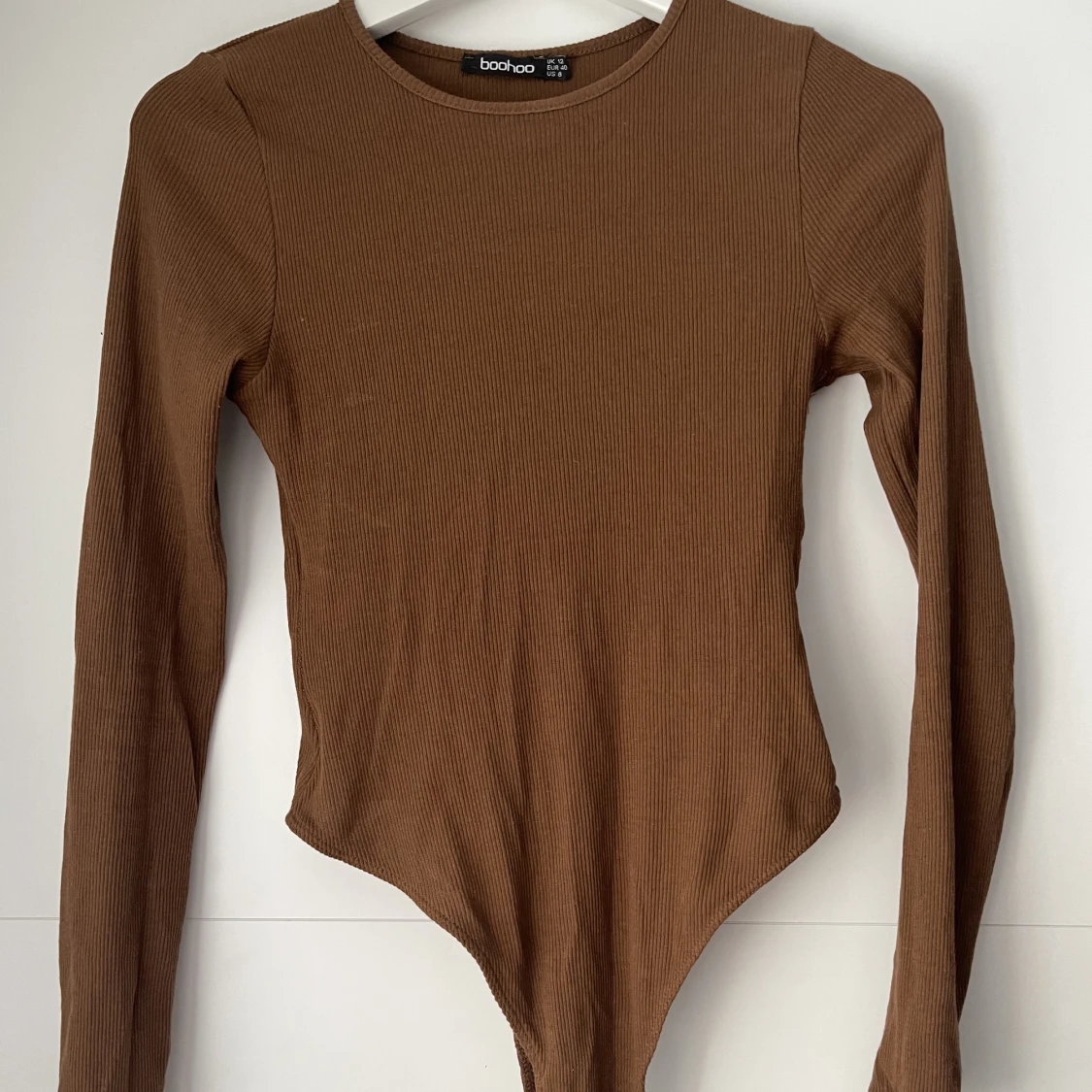 Säker en fin brun body från Boohoo, använd 2 ggr. Strl L men skulle rekommendera till en M, då den är liten i storleken. Den går upp rätt mycket på sidorna, där av rekommenderar till en M❤️
