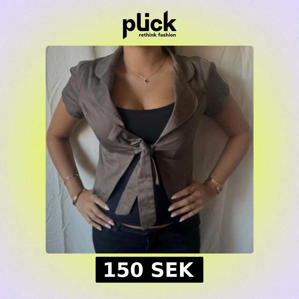 Brun bolerotopp med korta ärmar och snygg knytning framtill. Perfekt att slänga över ett linne för en trendig outfit.