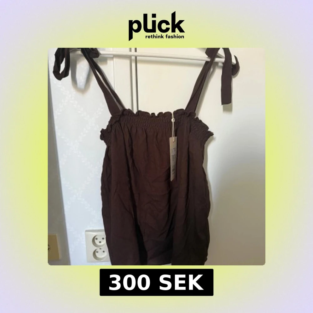 Snygg brun croppad linnetopp från Cream med smock upptill och knytbara axelband. Perfekt för varma dagar och enkel att styla med jeans eller kjol. Luftig och skön känsla tack vare linnematerialet.
