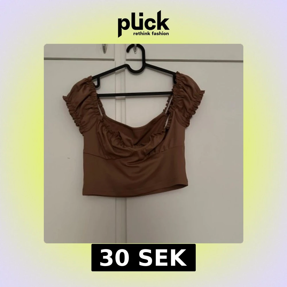 Säljer en brun croppad topp med volangdetaljer vid ärmarna och en snygg knytning i ryggen. Toppen har korta puffärmar och en söt, romantisk stil. Perfekt för sommardagar eller när du vill känna dig extra fin.
