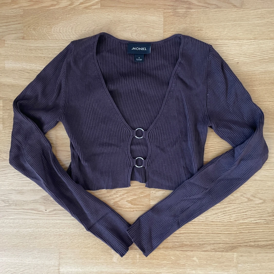 Mörkbrun crop top från Monki med söt detalj fram 💌
