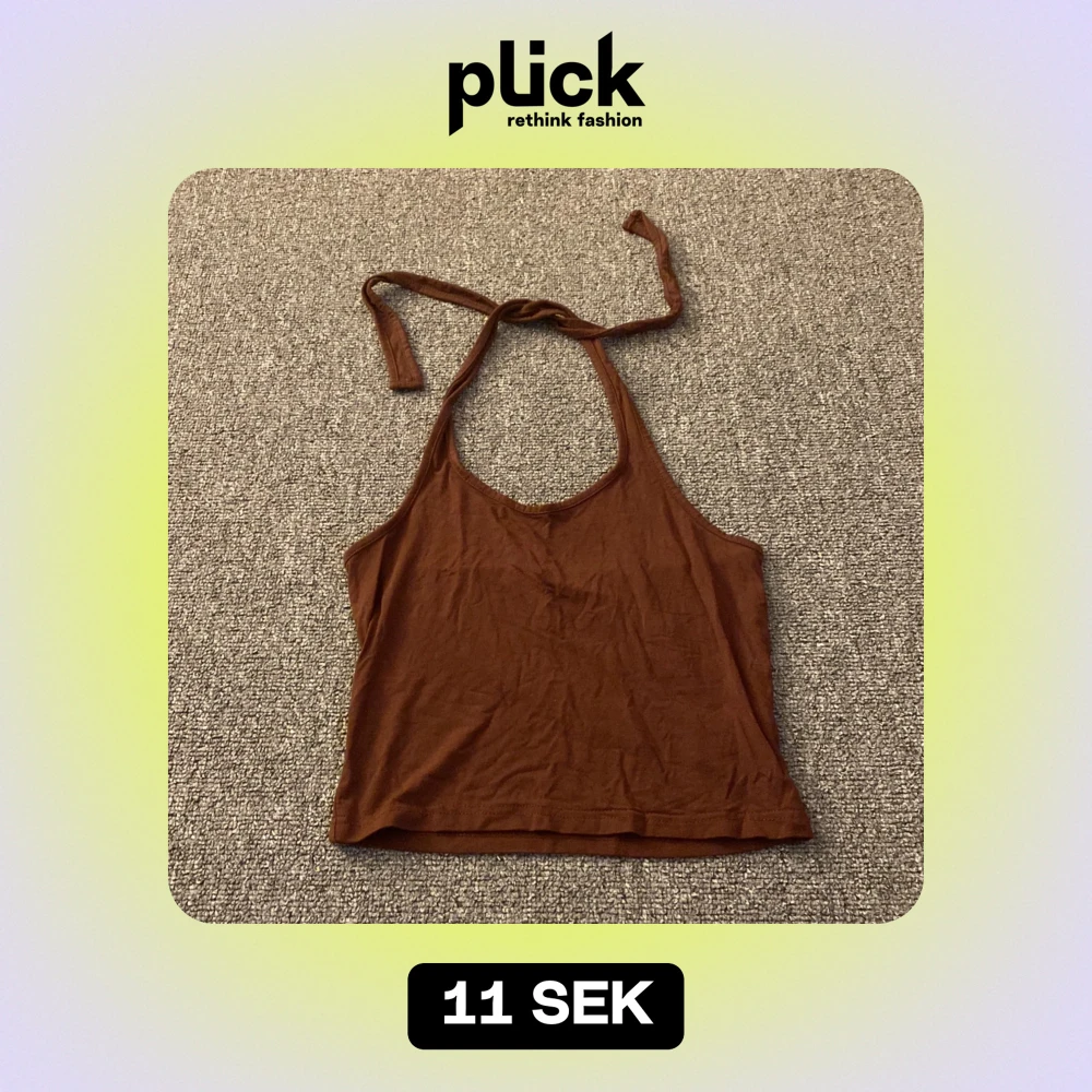 Säljer en snygg brun halterneck-linnetopp i bomull. Perfekt för sommardagar eller en avslappnad kväll. Toppen har en enkel design med knytband runt nacken och är i bra skick. Passar perfekt till jeans eller shorts!