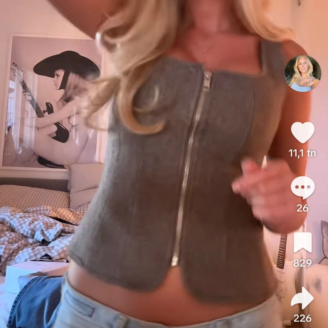 Supersnygg grå korsett-topp med breda axelband och markerad midja. Toppen har en silvrig dragkedja framtill som ger en edgy vibe och en lätt croppad passform. Perfekt att styla med jeans för en cool look.