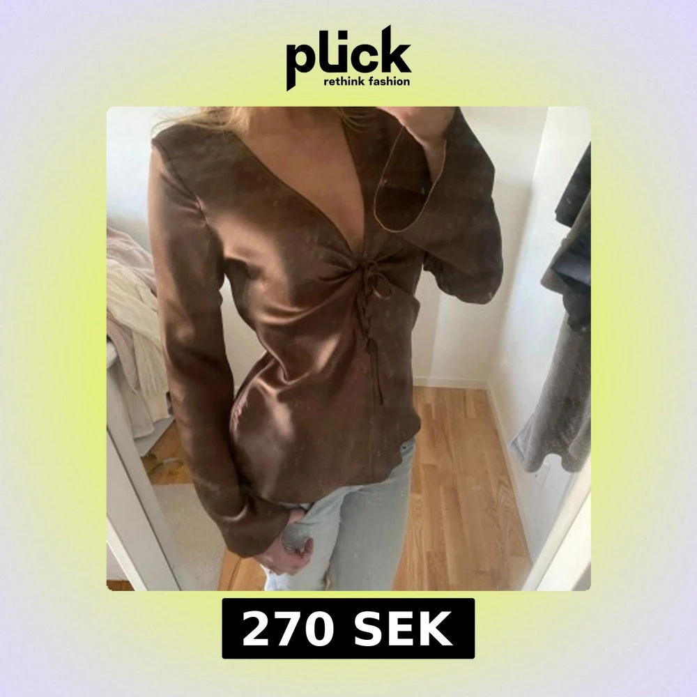 Snygg brun blus med lång ärm och knytning framtill. Använd ett fåtal gånger så fint skick🥰