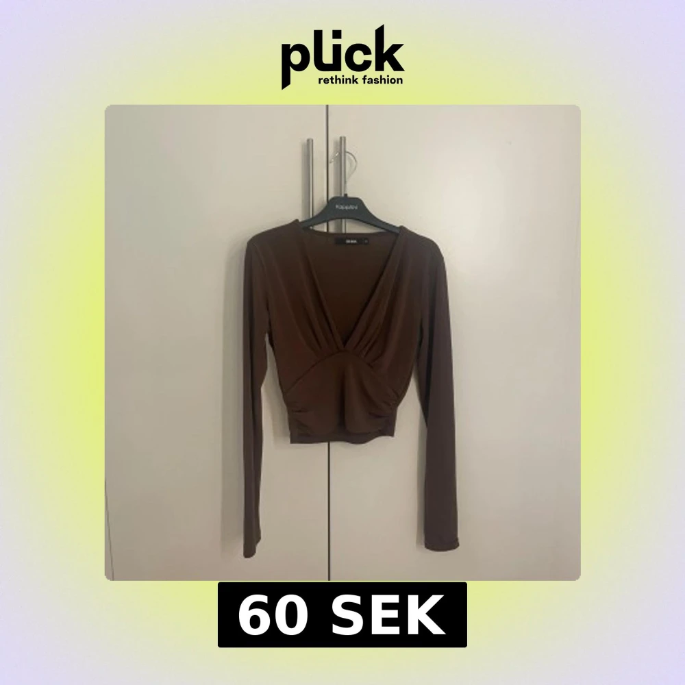 Säljer en stilren brun långärmad topp från Bikbok med v-ringad design. Perfekt för en chic och enkel look. Toppen är i ett mjukt och bekvämt material.