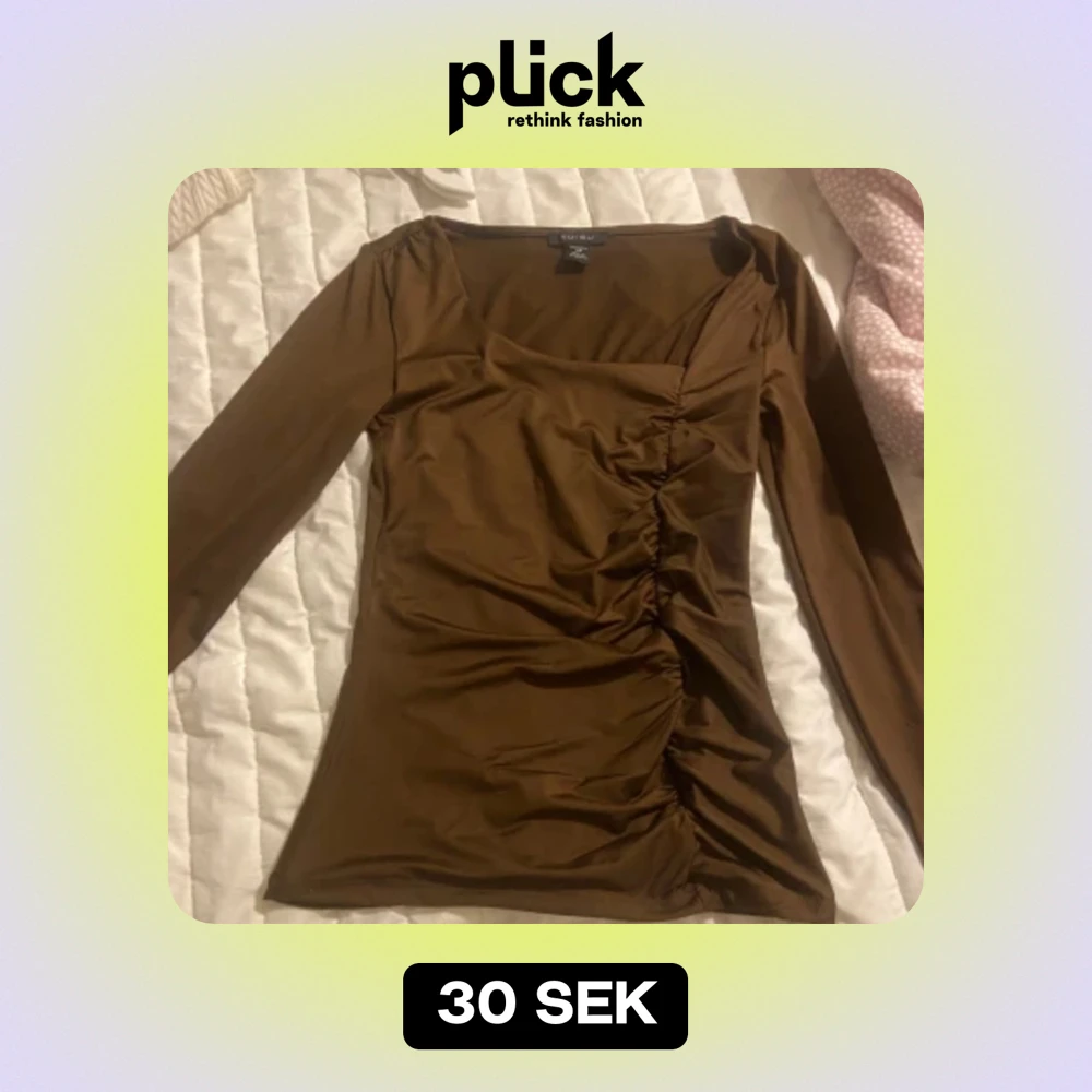 En brun långärmad topp från Amisu med rynkade detaljer på framsidan. Toppen har en fyrkantig halsringning och är tillverkad i ett mjukt och stretchigt material. Den är i perfekt skick då den aldrig är använd