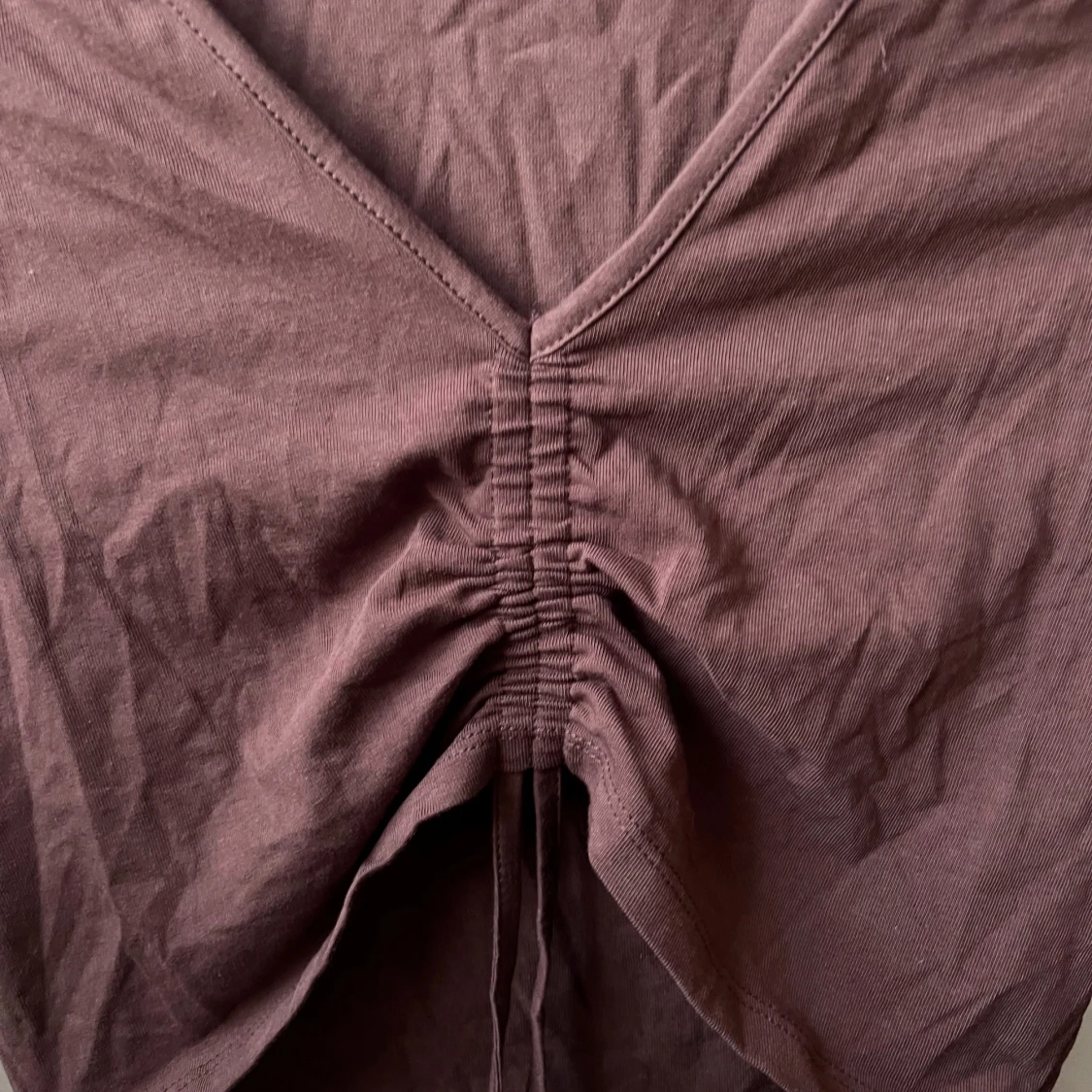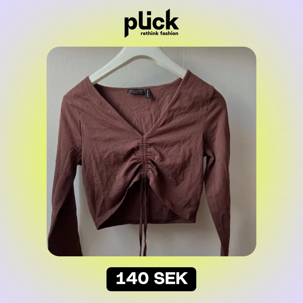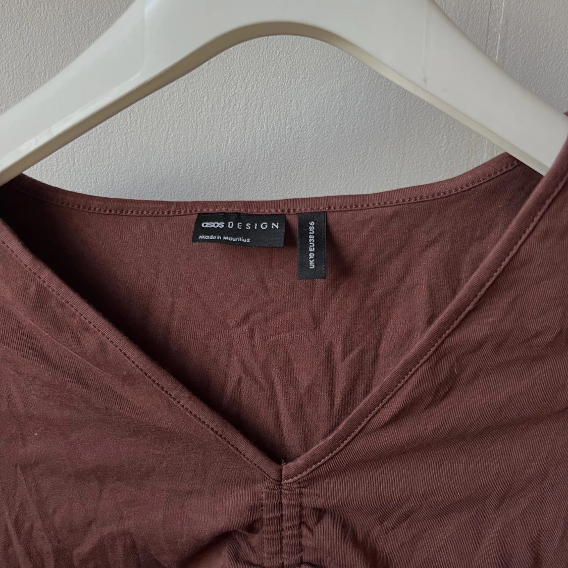 Säljer en snygg brun långärmad topp från ASOS DESIGN. Den har en v-ringad design med knytning framtill som ger en cool detalj. Perfekt för höst och vår, och kan stylas både upp och ner beroende på tillfälle.