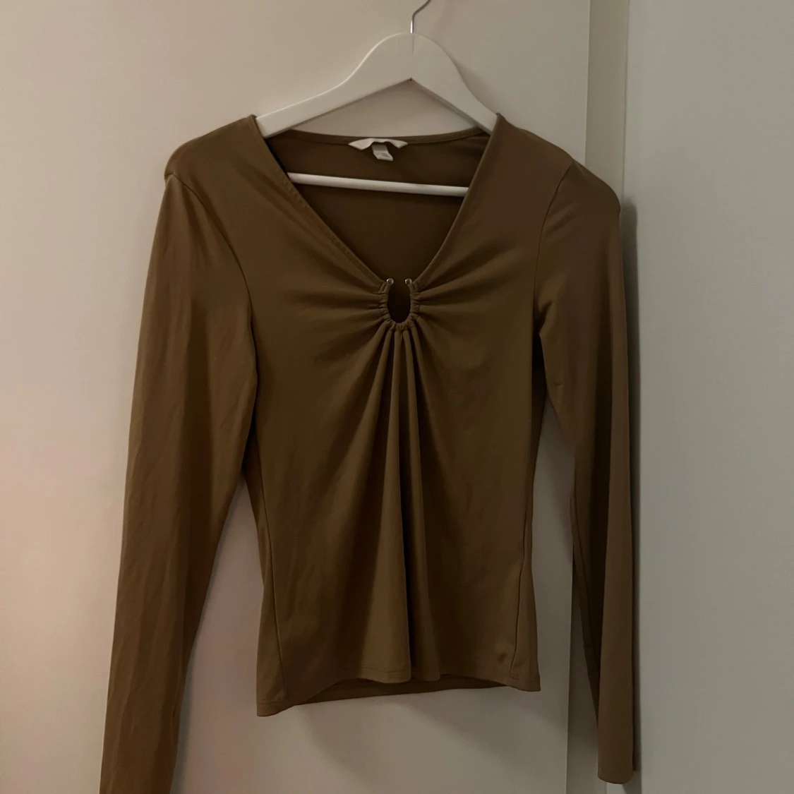 Brun långärmad topp med ringdetalj