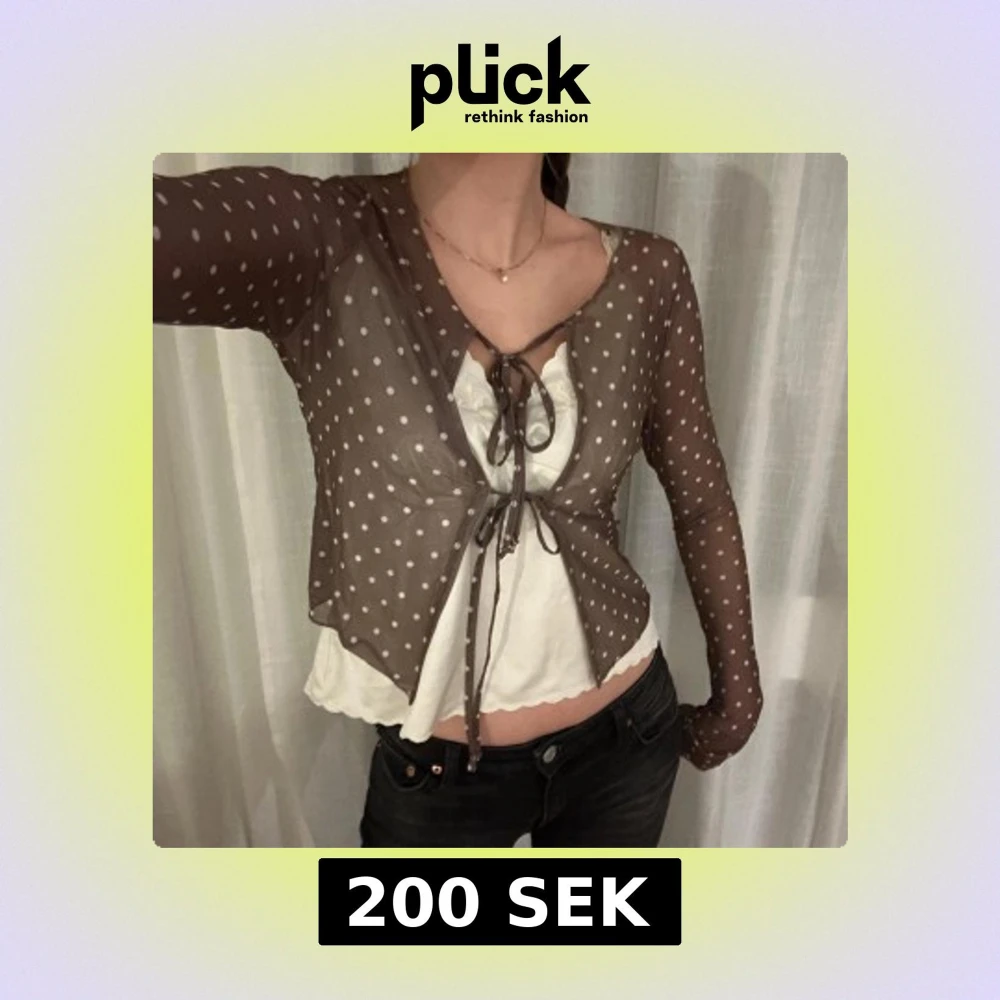 En tunn brun bolerotopp med vita prickar och knytning framtill från Motel rocks. Endast testad.