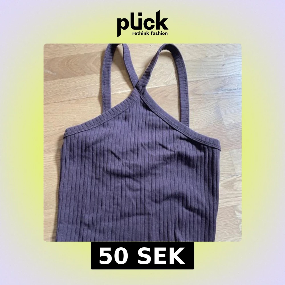 Säljer en brun ribbad linnetopp från Gina Tricot med smala axelband som korsas framtill. Toppen är ärmlös och har en croppad passform, perfekt för varma dagar.