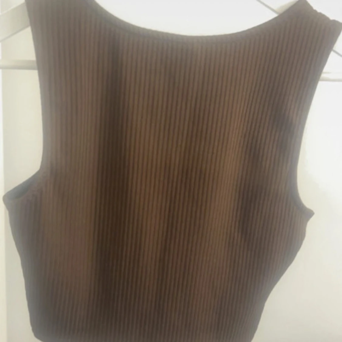 Säljer en brun ribbad linnetopp från NLY Trend. Toppen är ärmlös och har en twistad detalj framtill. Perfekt för att matcha med jeans eller kjol. Snygg och enkel design som passar till många tillfällen.