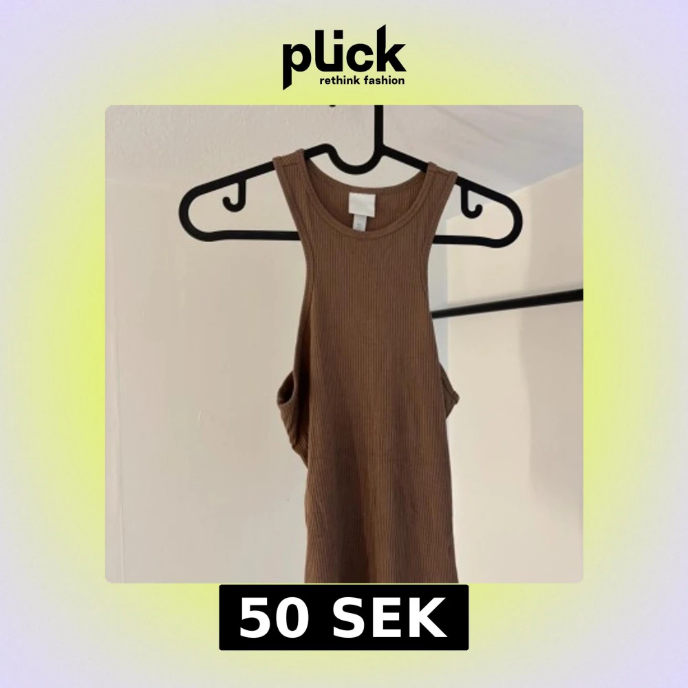 Säljer en snygg brun ribbad linnetopp. Toppen är ärmlös och har en tight passform, perfekt för varma dagar. Den är gjord i ett mjukt och stretchigt material som sitter skönt mot kroppen.