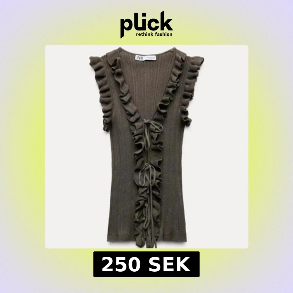 Olivgrön ribbad topp från Zara med volangdetaljer. Den är i fint skick men lite nopprig, går ty få bort☺️
