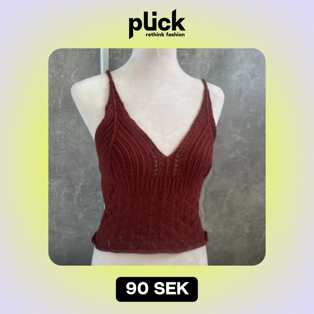 Nytt virkat linne i bra skick. Den har öppen rygg och fina mönster. Är rödbrun i färgen. Skriv om mer information 💞