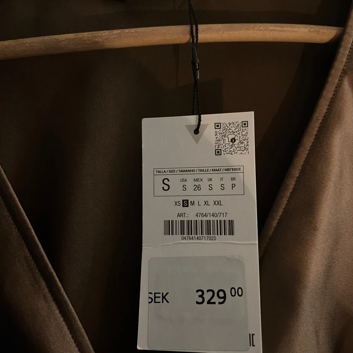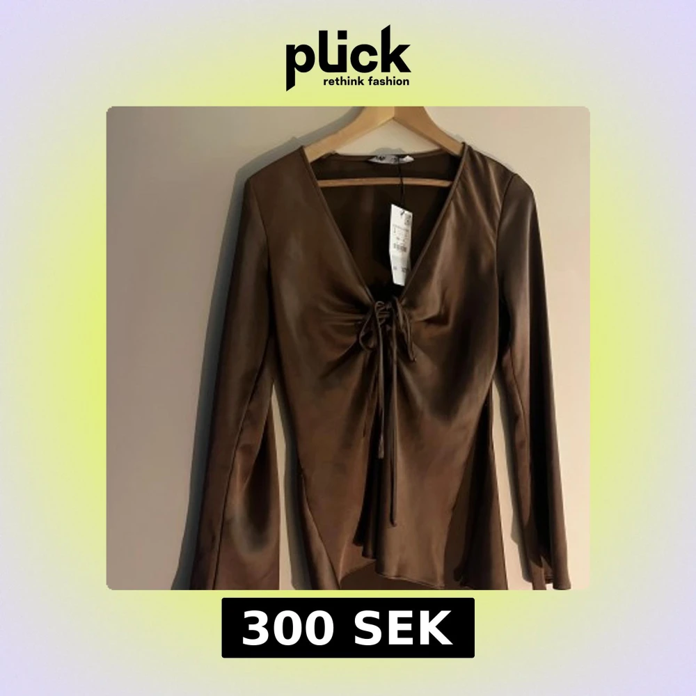 Säljer en brun långärmad satinblus från Zara med v-ringning och knytning framtill. Helt oanvänd med lappen kvar🤎