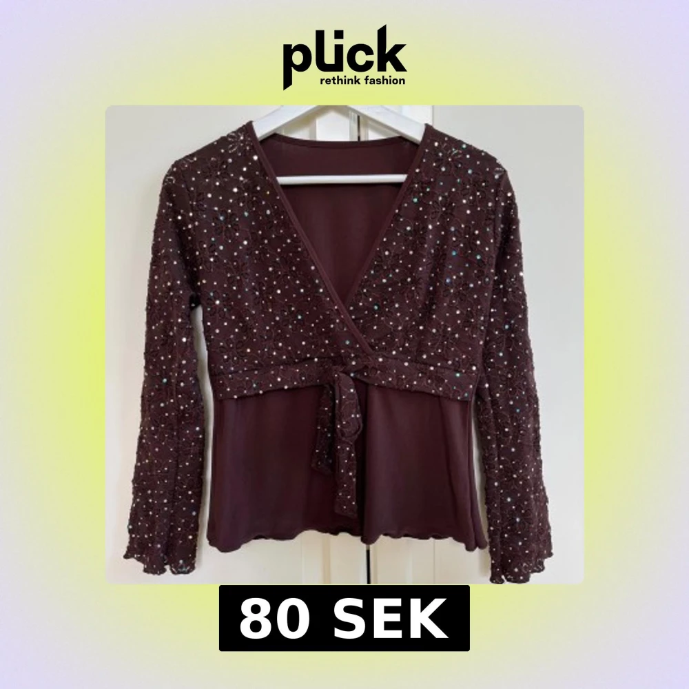 Snygg topp med paljetter på, köpt second hand. Finns ingen lapp men uppskattar att det är storlek S-M