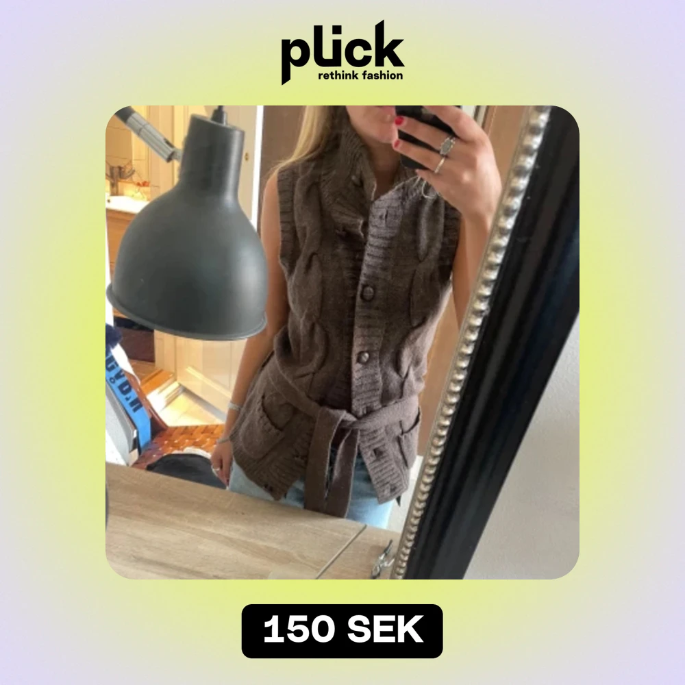 Super fin brun stickad topp med knappar och band att knyta i midjan