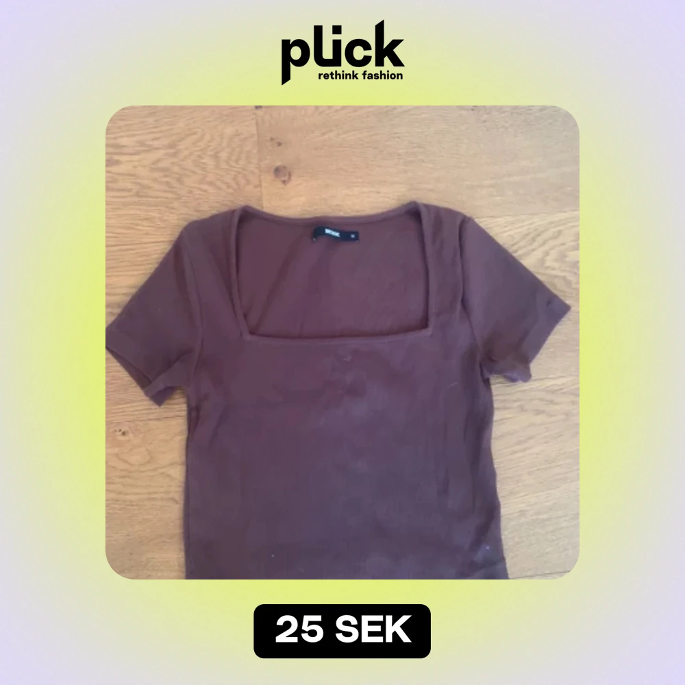 En brun topp från Bik Bok med korta ärmar och en fyrkantig halsringning. Toppen är tillverkad i ett ribbat material och har en normal passform.