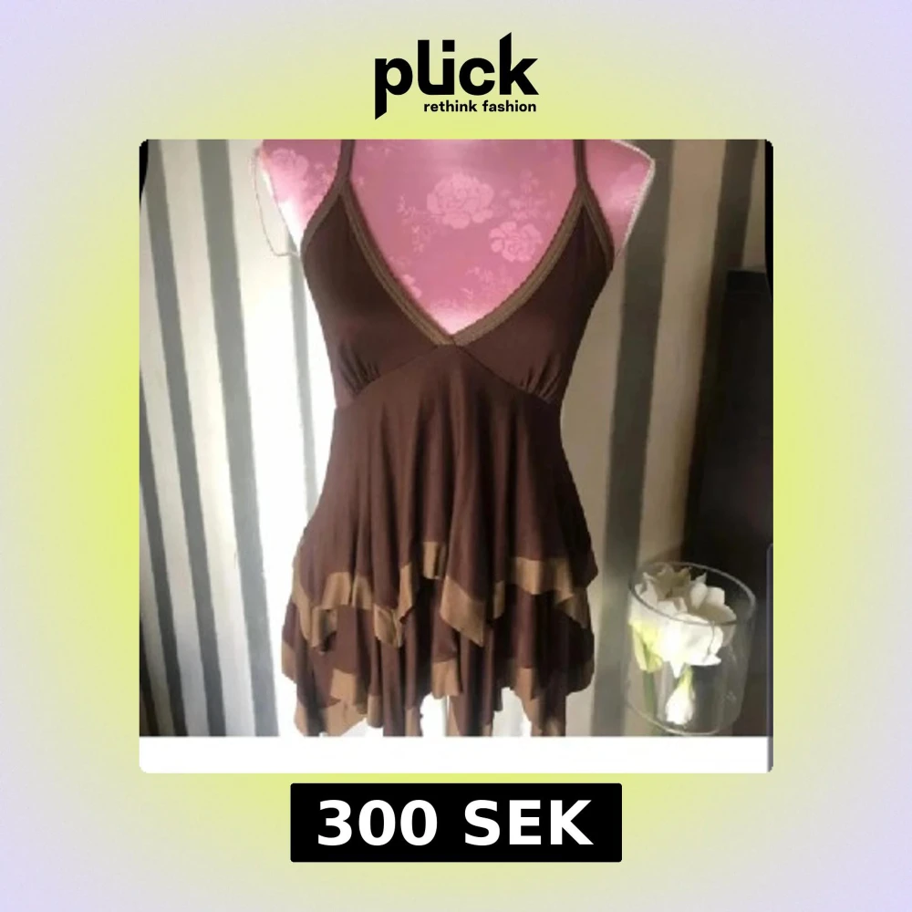 Supersöt brun linne från Zara med volangdetaljer och v-ringad hals. Linne har smala axelband och asymmetrisk nederdel med två olika bruna nyanser. Perfekt för dig som gillar en lekfull och feminin stil.