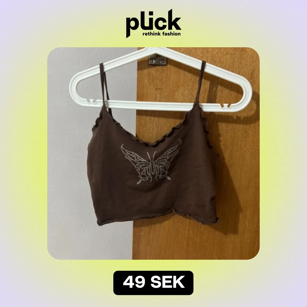 Brun croppad topp med en fjäril på i silver/glitter paljetter🤎 Nyskick!