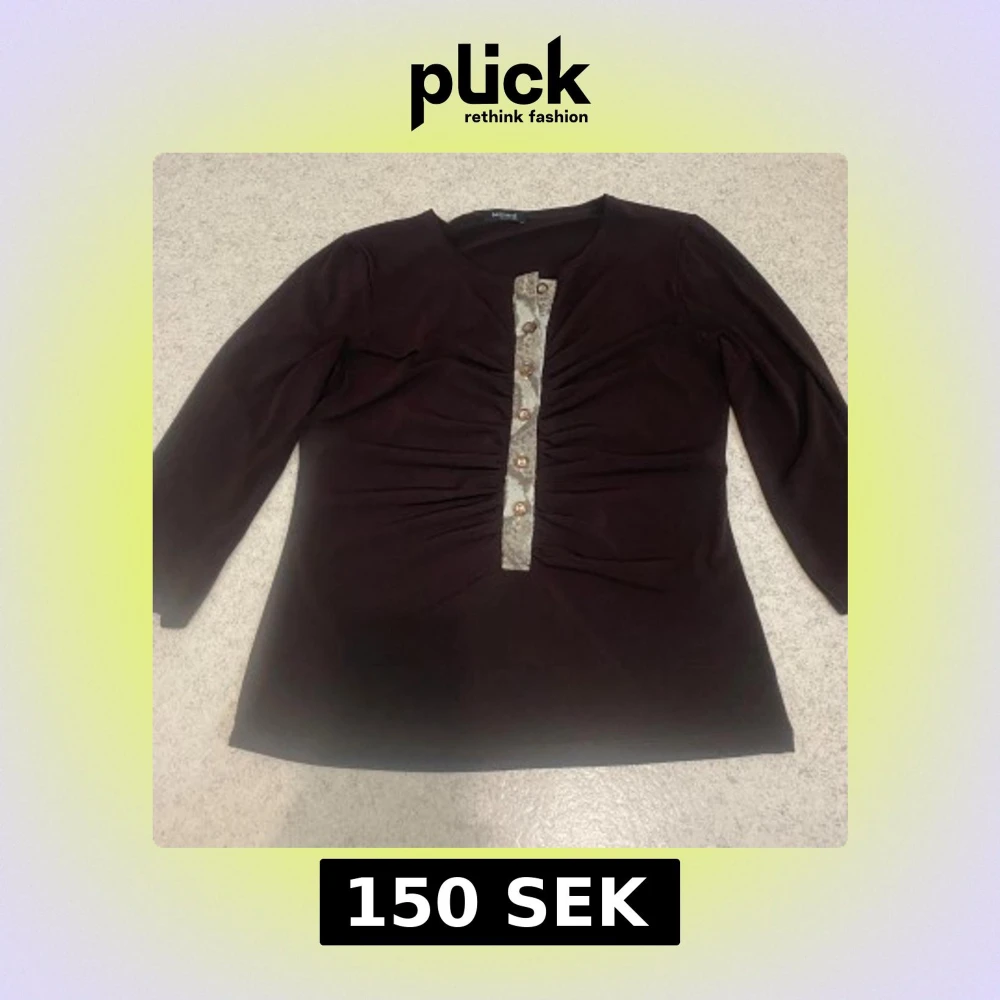 Snygg brun topp från Bernardi Collection med trekvartsärm och dekorativ knapprad framtill på ett mönstrat tyg. Toppen har rynkade detaljer längs magen som ger en cool look! Storlek S men passar även M.