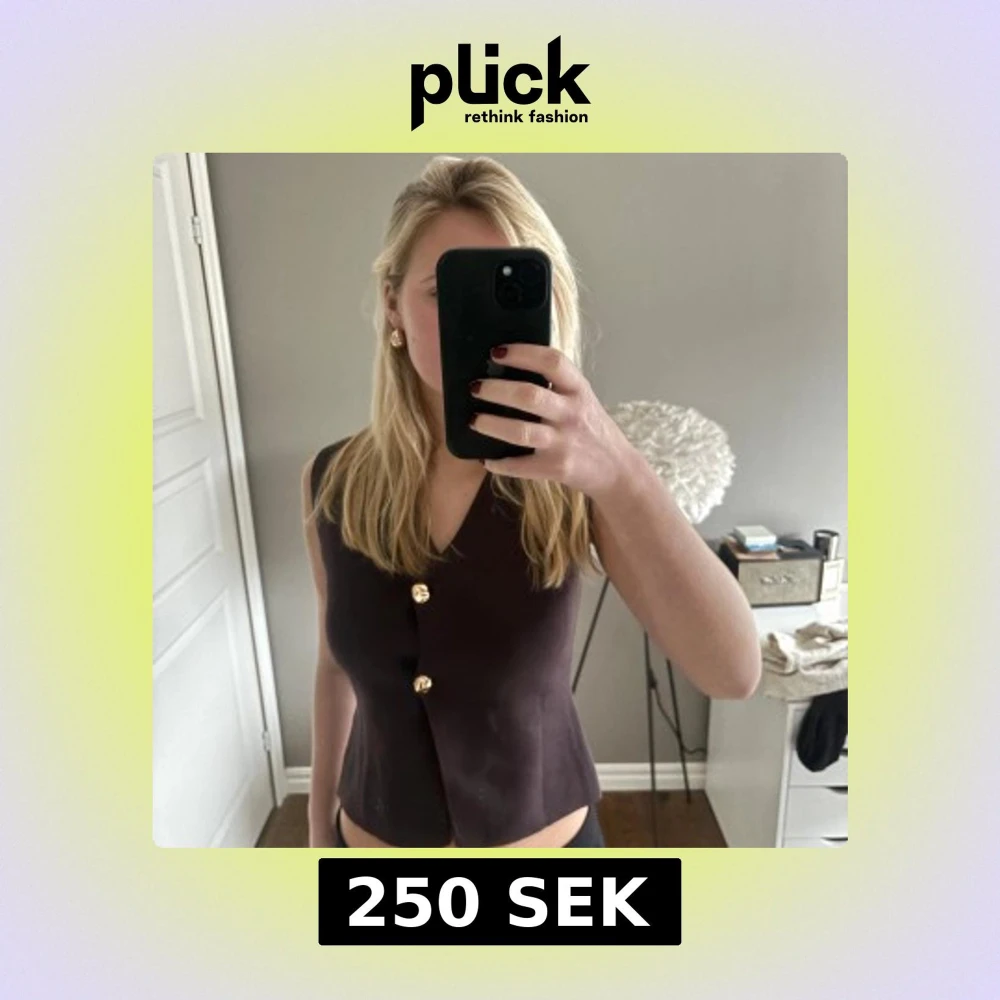Snygg brun väst från Zara med guldknappar och v-ringad design. .