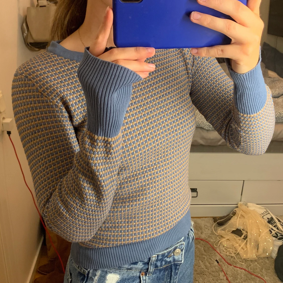 Blå-brun-prickig tröja från Zara.