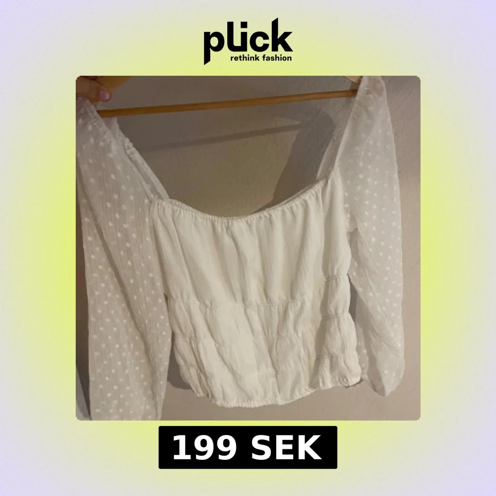 Supersöt vit blus från Bubbleroom med transparenta, långärmade ärmar i prickigt tyg. Blusen har en rak, något croppad passform och resår vid halsringning och nederkant. Perfekt för dig som gillar romantiska och trendiga detaljer.