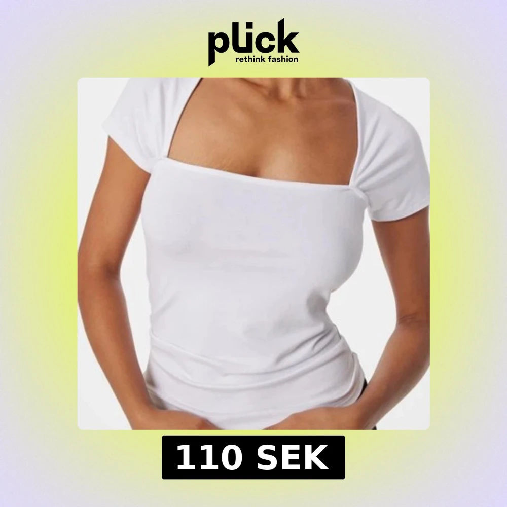 Säljer en vit topp från Bubbleroom med korta ärmar och snygg fyrkantig ringning. Toppen har en tight passform och är gjord i mjuk bomull, perfekt för en stilren look.