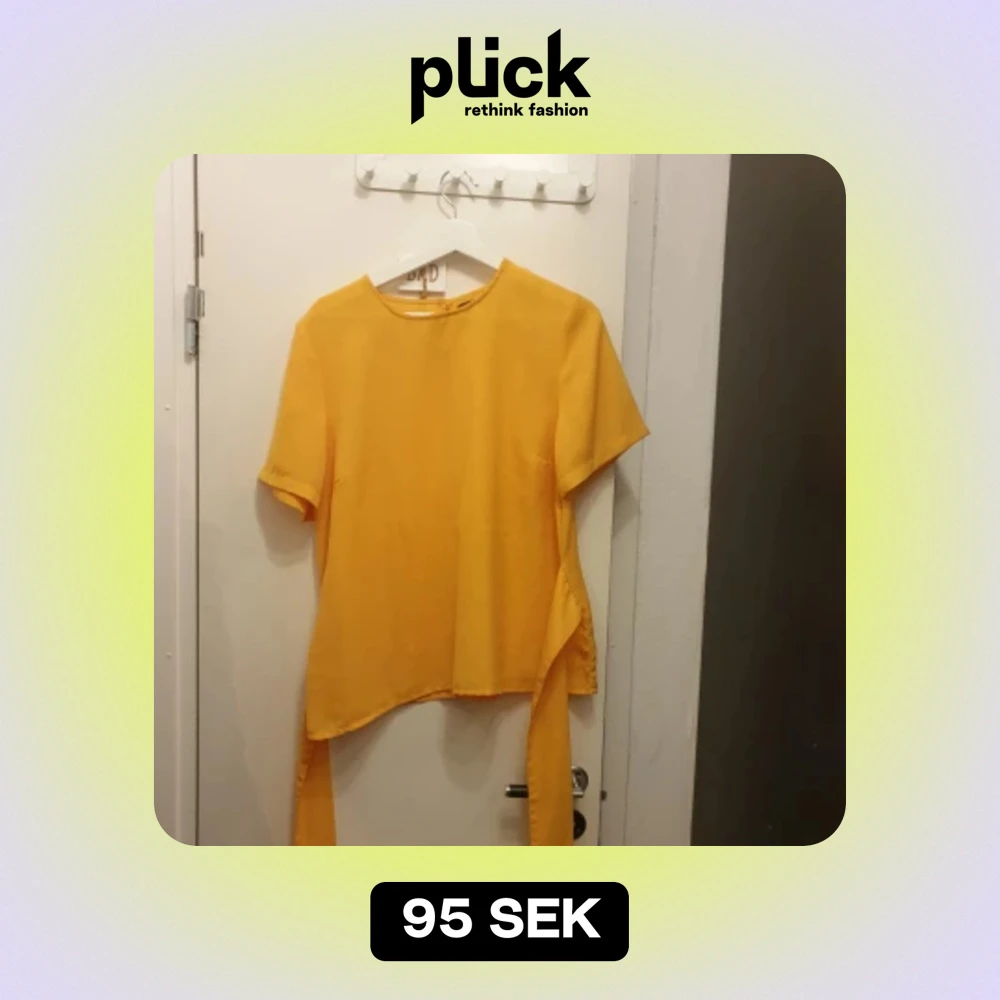 Säljer en snygg gul topp med korta ärmar. Den har en unik design med ett knytband som man kan välja att knyta fram eller bak. Perfekt för sommardagar eller en färgglad festoutfit!💛 från bubbleroom, märkt 42 men jag uppskattar den som en M/L