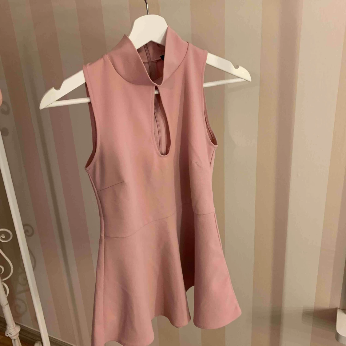 Ett fint ljusrosa linne med volang ner till, figursytt vid midjan & en lite högre krage. Köpt för 1,5 år sedan från bubbleroom! ✨ Frakten inkluderad! ✨
