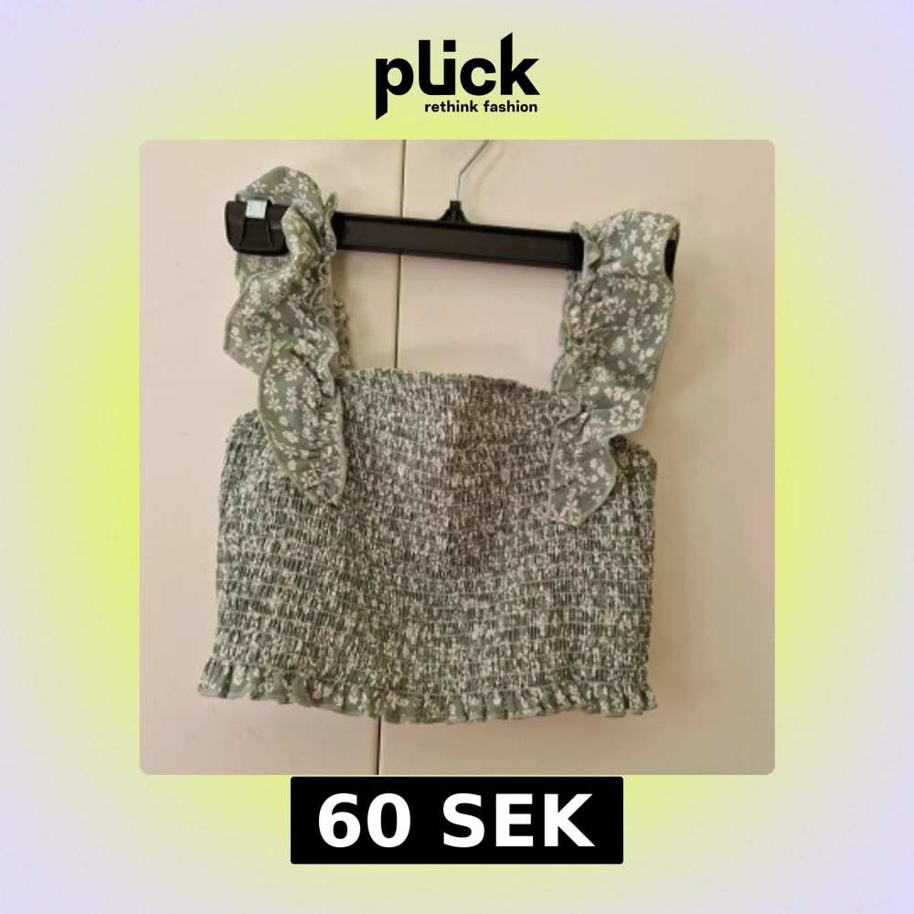 Grän topp med vita blommor. Ursprungligen från Shein. Magtröja så den är kort. Det står att den är för 14 åringar men den är liten i storleken så jag skulle nog säga 11-12 år så kanske storlek 152 men det är olika från person till person.