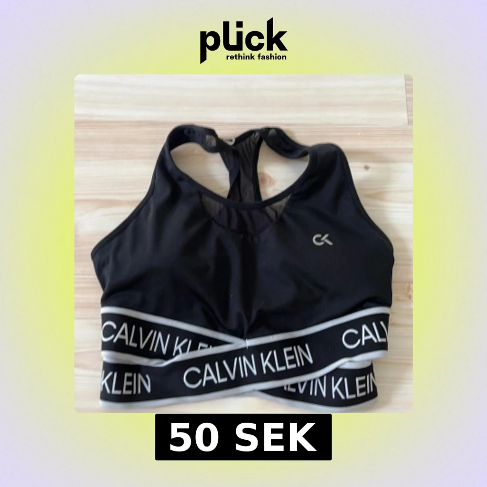 Sportig svart träningsstopp från Calvin Klein med bred resår och logga i vitt runt midjan. Toppen har meshdetaljer i ryggen och klassisk racerback-modell. Perfekt för träning och ger en snygg, tight passform. Har även padding vid brösten.