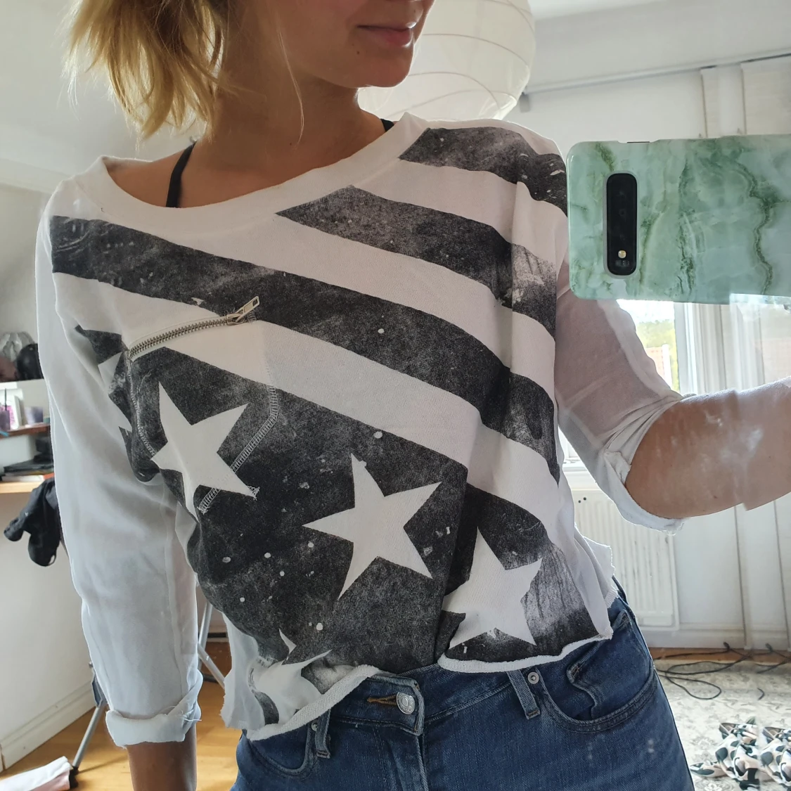 Knappt använd blus/tröja från carlings. Väldigt snygg men aningen seethrough rygg med lager på lager stil!