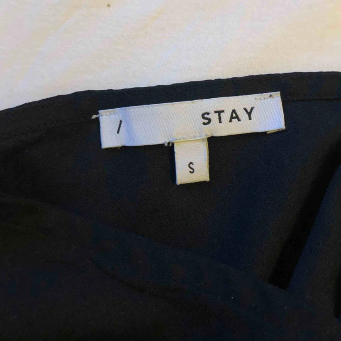 Fint svart linne i storlek S från stay. Se andra bilden för o se hur det ser ut i ryggen. Linnet är i fint skick. Frakten betalas av köpare.