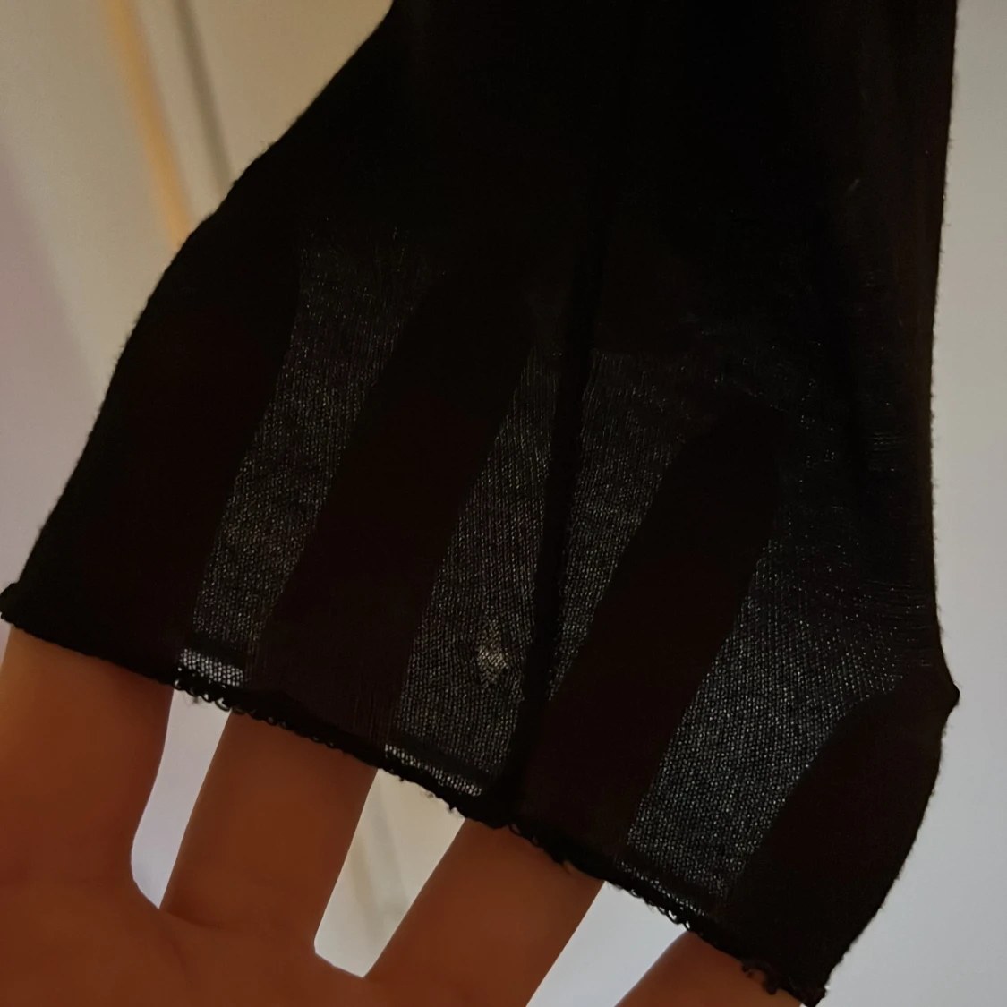 Svart cashmere tröja från intimissimi. Storlek S, några små hål som syns på de två sista bilderna, därav säljer jag den mycket billigt.