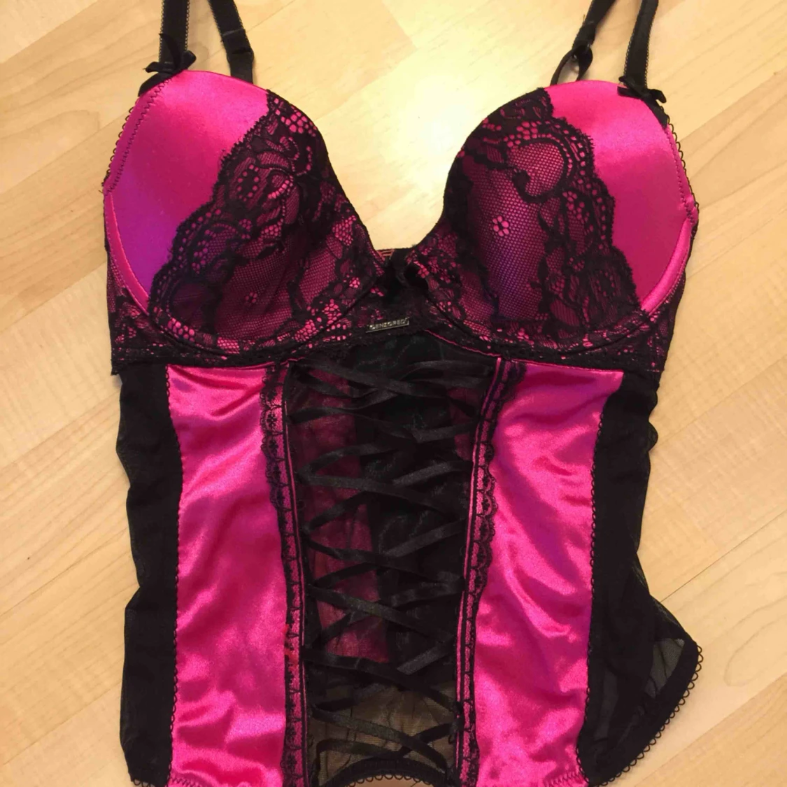 FRI FRAKT Svart/Rosa korsett med spets från New Yorker. Snörning i fram, BH spännen i bak