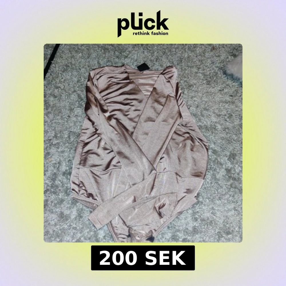 Säljer en champagnefärgad omlottopp från Gina Tricot i glansigt satinliknande material. Toppen har långa ärmar, v-ringning snygg passform. Perfekt för dig som gillar trendiga och stilrena plagg.