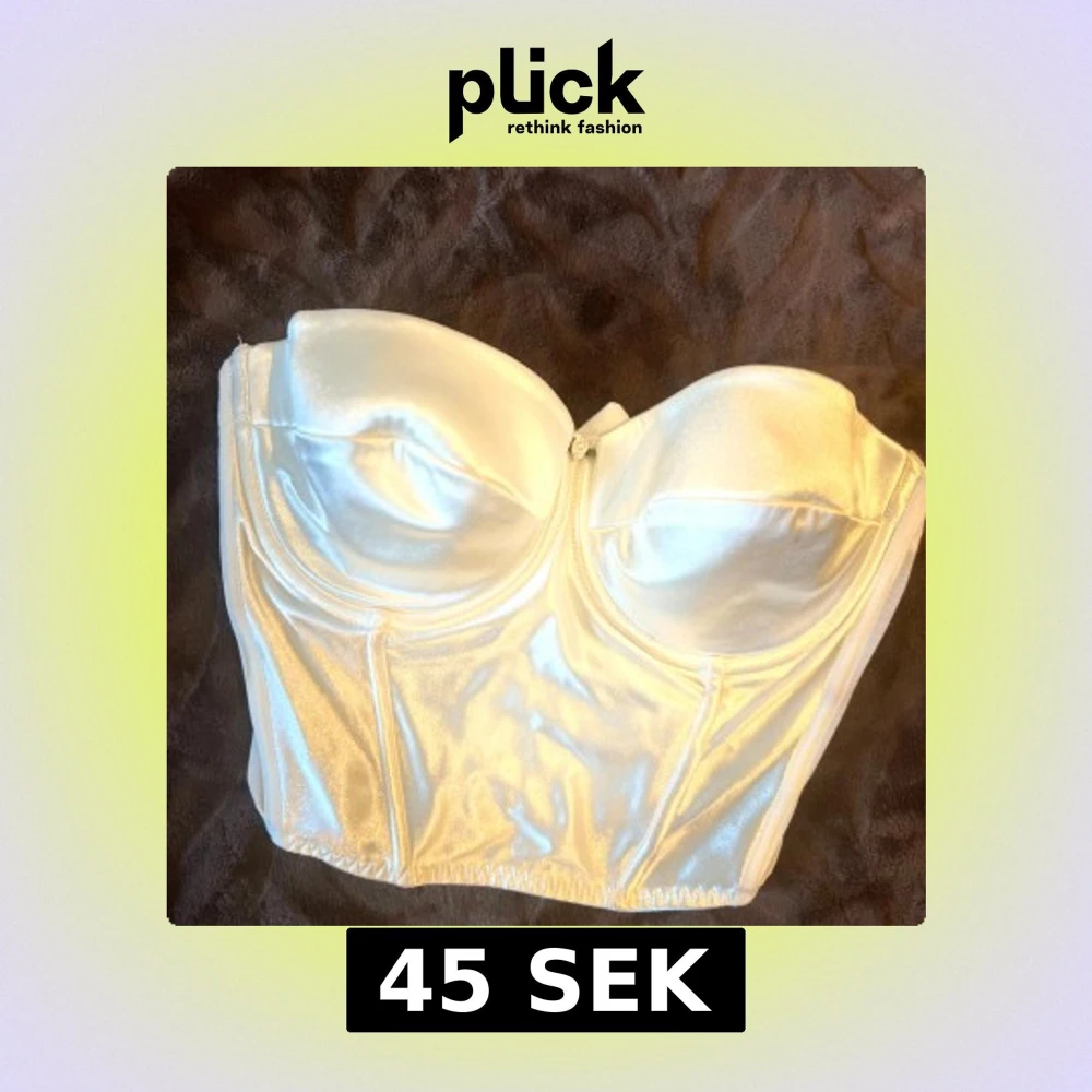 Snygg korsett i champagnefärgad satin med formade kupor och axelbandslös design. Glansigt material som ger en lyxig känsla och markerar midjan. Perfekt för att lyfta din outfit med en elegant touch.