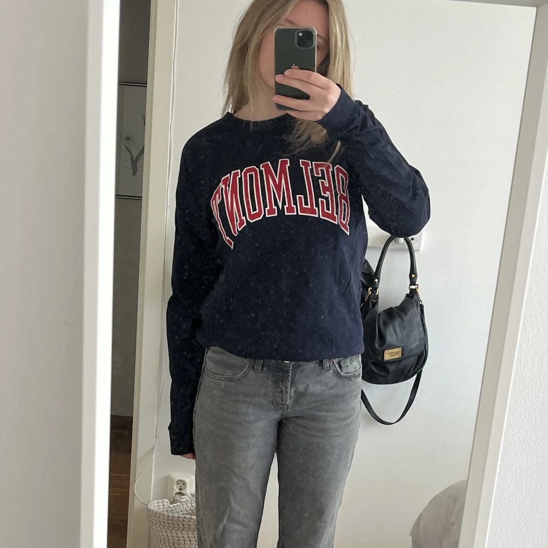 En långärmad jättecool tröja ifrån champion med tryck! Storlek M passar även en S. Mörkblå med röd text och den är i bra skick
